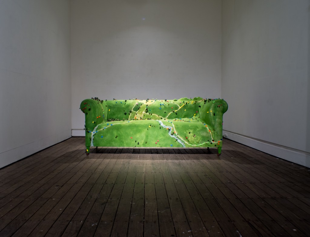 Installation / Brooch. Polychrome Urethane, Bovine Excreta, Sofa facsimile