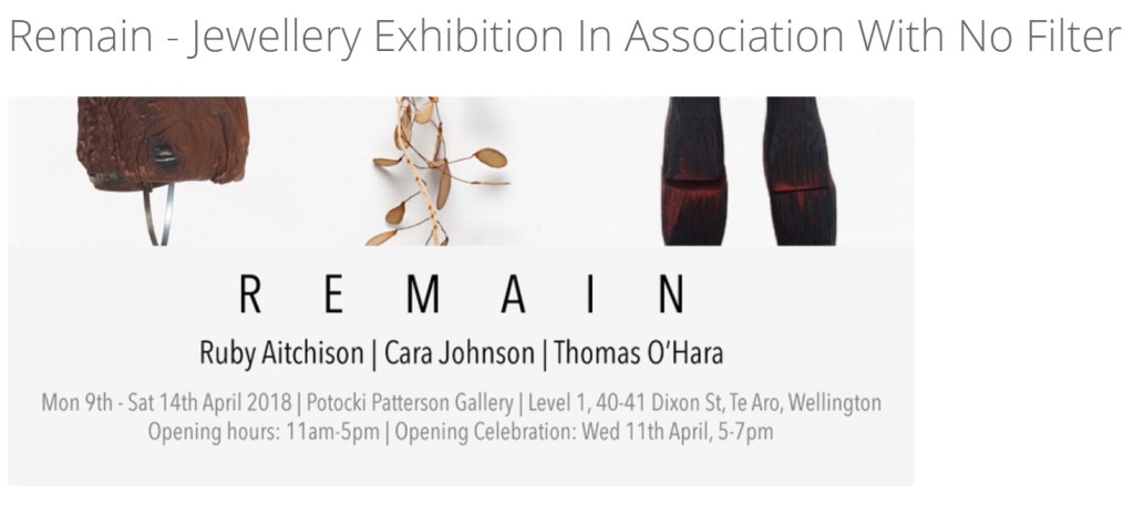 - Especially don’t forget the Contemporary Jewellery Auction: Saturday 14th April at Te Auaha. Bar opens 3pm for a 4pm start. Be there or suffer jewellery envy!