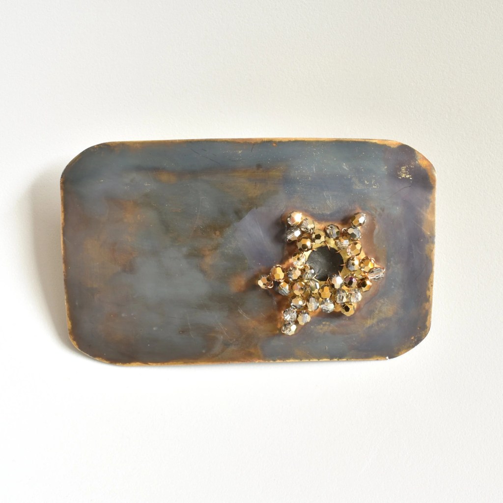 The jewellers have landed Glass beads, thread, safety pin